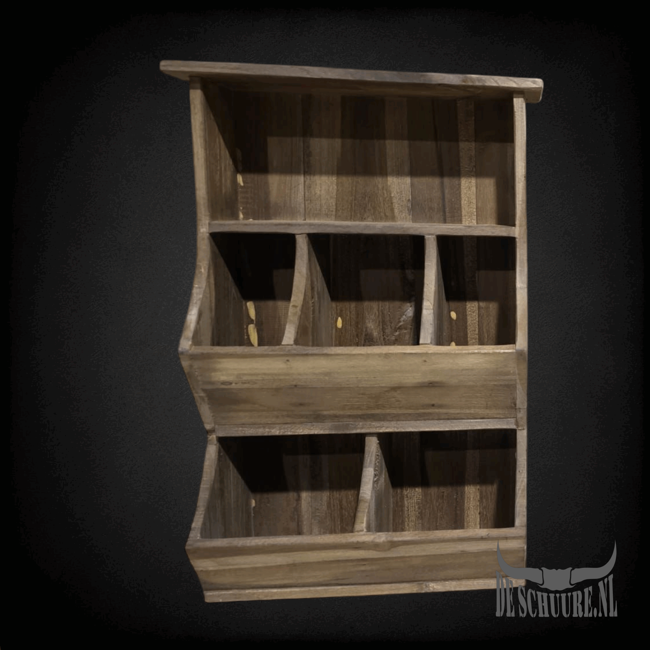 grutterbak met vijf vakken. Gemaakt van hout in bruine kleur tint