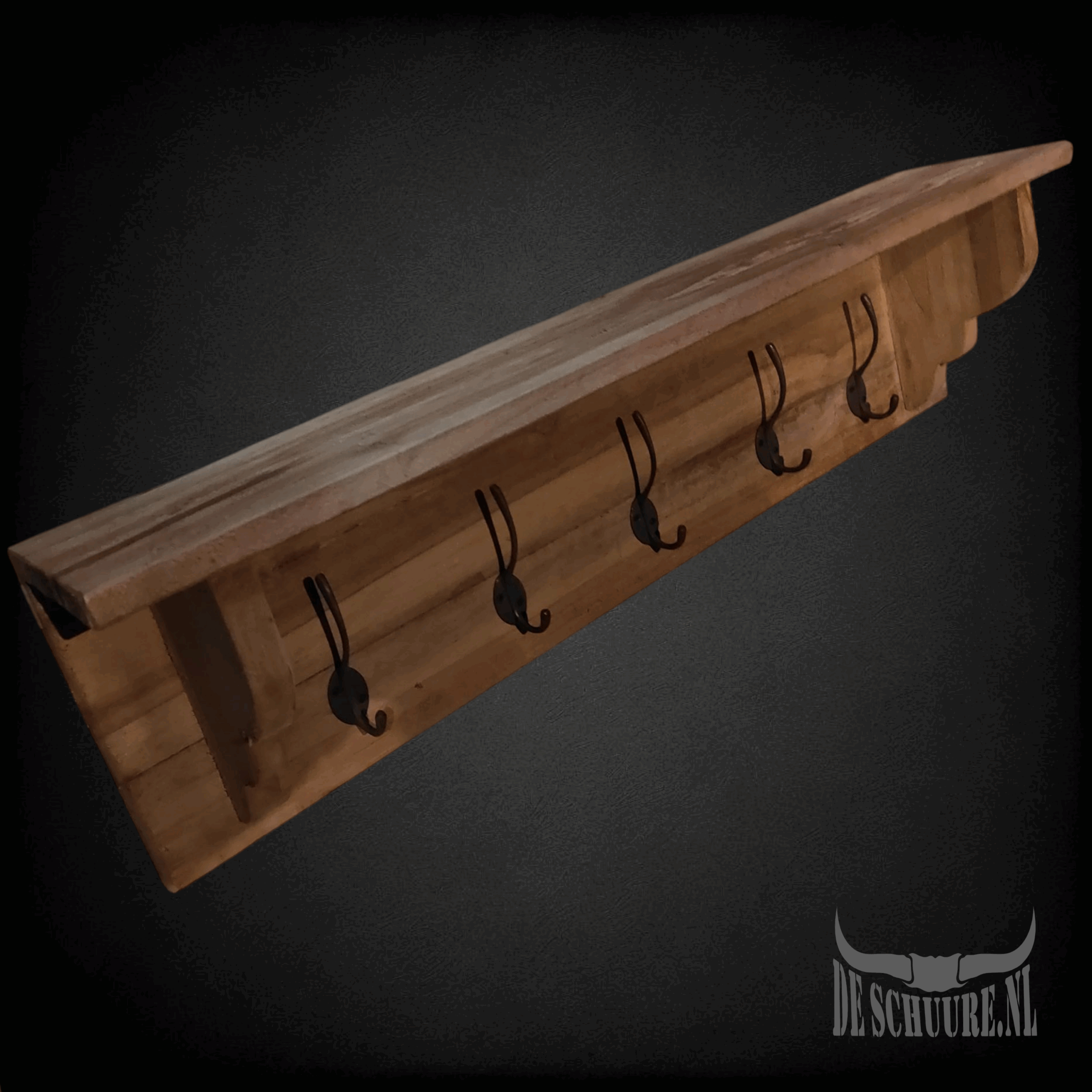 kapstok met vijf haken en legplank