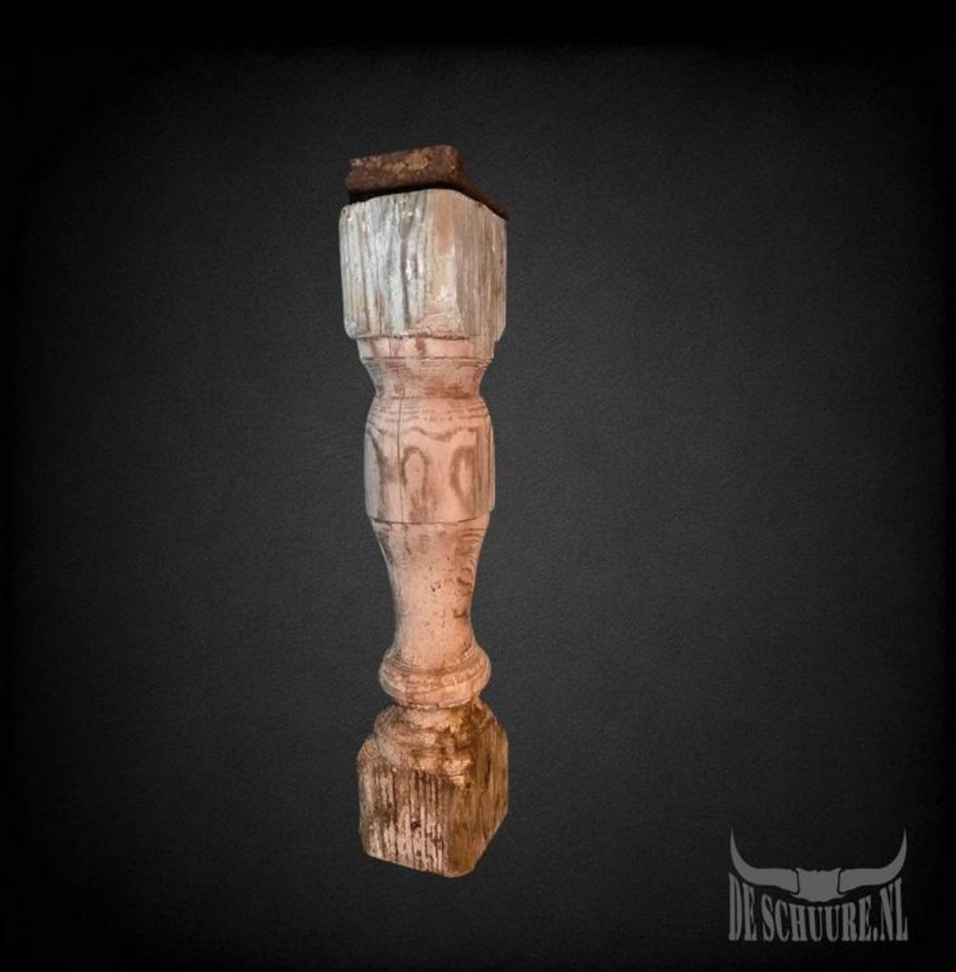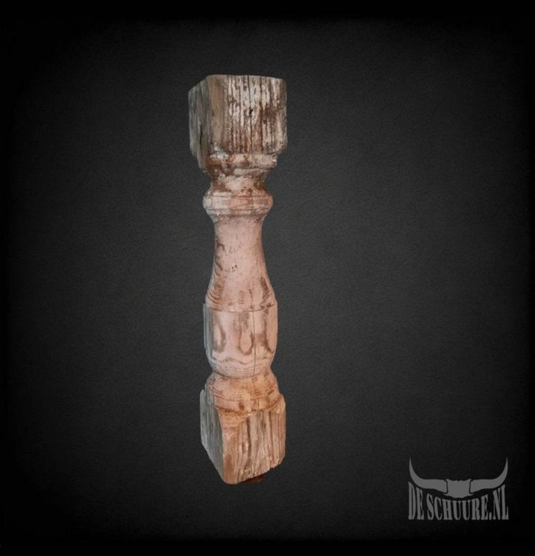 Oude baluster, perfect als decoratief element voor een rustieke of vintage inrichting. Deze baluster vertoont tekenen van ouderdom, wat bijdraagt aan zijn unieke charme. Gebruik hem als decoratie op een plank, of als een op zichzelf staand object. 48cm hoog