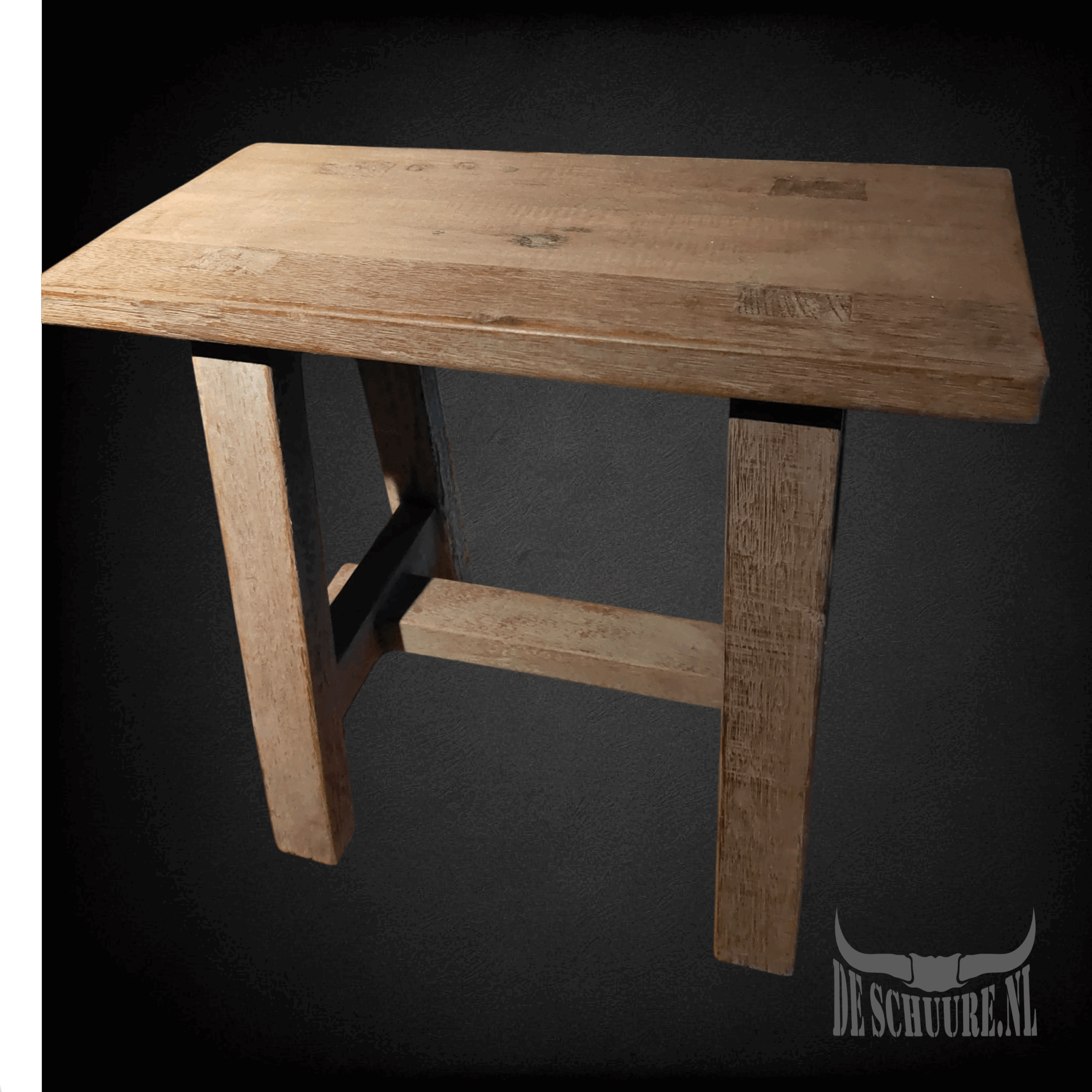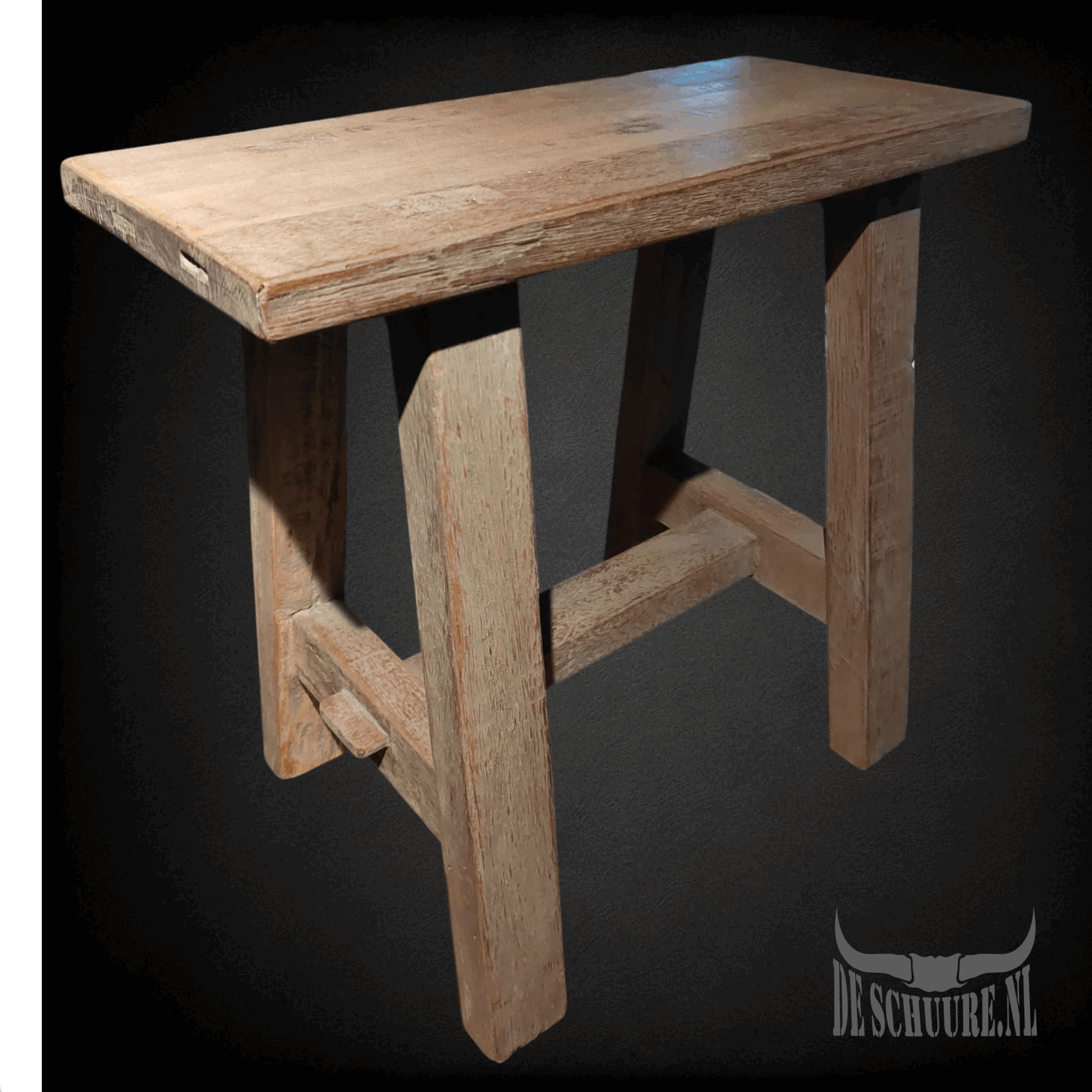 Stoer houten bankje/krukje. Kan voor verschillende doeleinden gebruikt worden.Vergrijst hout Ideaal als decoratie of functioneel meubelstuk.